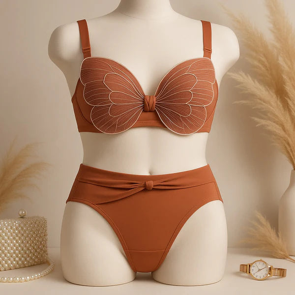 High Quality Cute Butterfly Embroidered Adjustable Straps Full Back Support Bra & Panty Set 8806