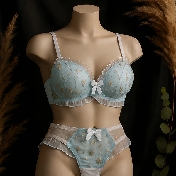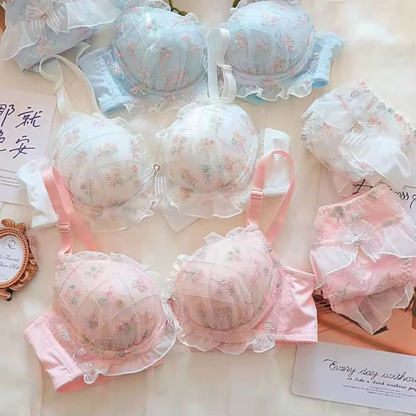 High Quality Cute Butterfly Embroidered Adjustable Straps Full Back Support Bra & Panty Set 8806