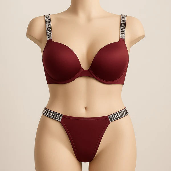Signature Padded Bra & Panty Set – Crystal Strap Style 3036